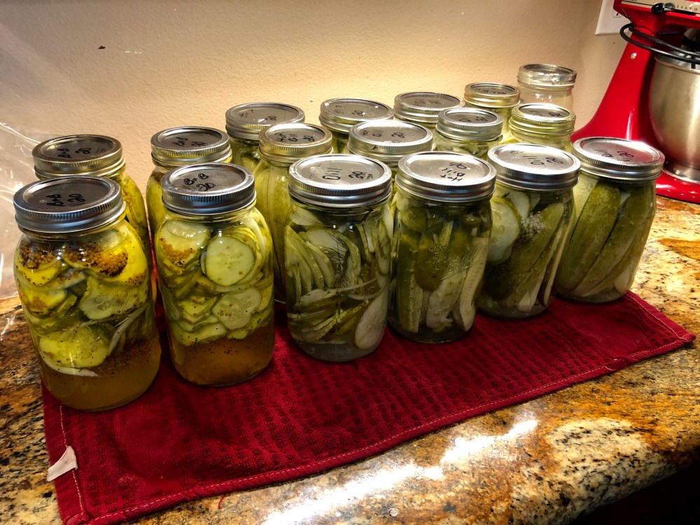 Canning takes me back…growing up, my grandparents (Mamaw and PawPaw) had a huge garden and we would have canning days to put up as much of the vegetables we could so they wouldn’t spoil. I can distinctly remember walking into Mamaw’s kitchen and my eyes burning from the onions and peppers that were going into her homemade picante. She would can everything: tomatoes, squash, cucumbers, okra…the list goes on and on. She would bag up and freeze corn and peas. She used old bread bags as freezer bags when she didn’t have any. Mrs. Baird’s would be full of corn on the cob! And, it didn’t matter that it wasn’t a “freezer bag” because the veggies never stayed in there for long!